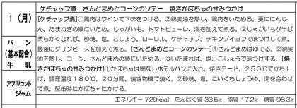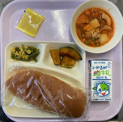 ケチャップ煮、さんどまめとコーンソテー、焼きかぼちゃの甘みつがけでした。