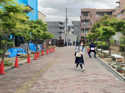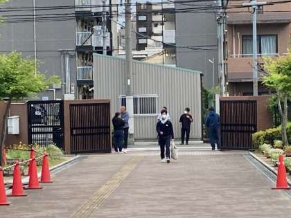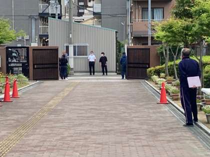 昨夜までの雨のため、グランドコンディションが悪く、集会は放送で行われました。