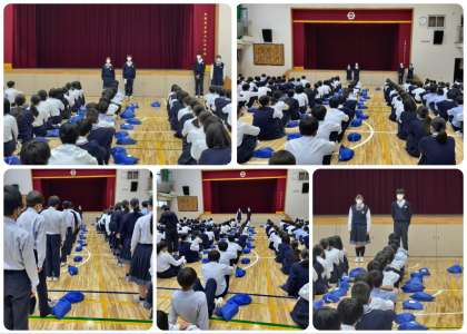 学校を作っていくのは君たちです。1年生を気にかけてメッセージを作ってくれたように、他の人を意識して行動できる君たちであることを、これからも頑張ってくれることを期待しています。というお話でした。
