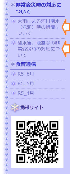 非常変災時の対応について学校HPの右下のところに掲載させていただいています。