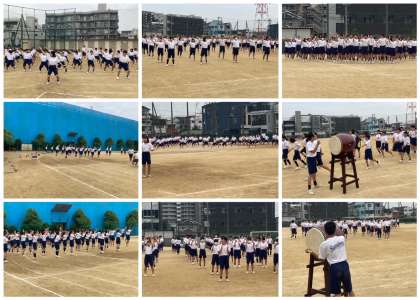 各団に分かれて応援合戦の練習をしました。最後に応援合戦の予行を行いました。