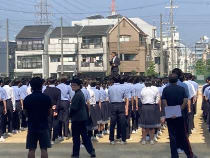 全校集会では校長先生から、今週水曜日からの学期末テストを前にノートの取り方についてのお話がありました。