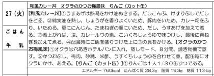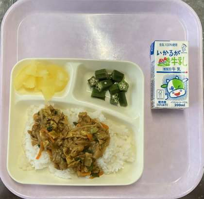 今日は、和風カレー丼、オクラのかつお梅風味、りんご(カット缶)でした。