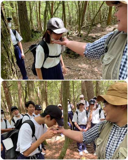 ガイドさんが、日本鹿の糞を発見。