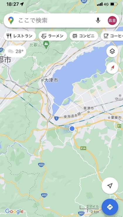 バスは、大津付近を走行しています。