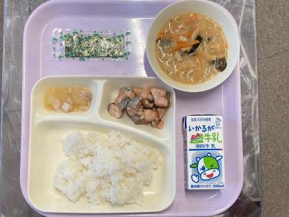 鮭のつけ焼き、みそ汁、冬瓜の煮物と焼き海苔でした。