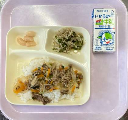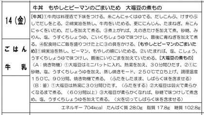 もやしとピーマンの胡麻炒め、大福豆の煮ものでした。