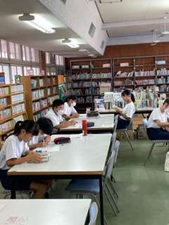 図書室の本を参考にして、課題を仕上げていました。