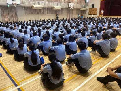 校長先生からは、生徒の皆さんの元気な顔に再会できたことを嬉しく思います。ということばがありました。そして、2つのお話がありました。