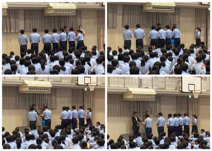 2つ目は、住之江中学校の生徒は、挨拶がきっちりとできますね。と、来校者からよくお褒めの言葉を言われます。そこからさらにステップアップしてください。挨拶をする時には、相手の眼を見て、自分から先に声を出すことを心掛けて欲しいです。と、いうお話がありました。