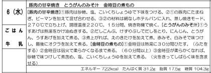 豚肉の甘辛焼き、冬瓜のみそ汁、金時豆の煮物でした。