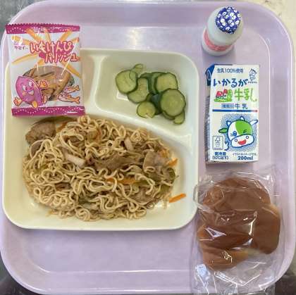 焼きそば、きゅうりの生姜漬け、芋けんぴフィシュ、発酵乳でした。