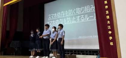 9月22日(金)?中間テスト後に、生徒会がスマホについて、全校生徒に向け発表を行いました。