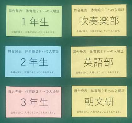 部活動分は、本日。学年分は、明日受付にて下の写真の「体育館2Fへの入場証」をお配りします。受け取られましたら、入校証と一緒にカードケースに入れておいてください。