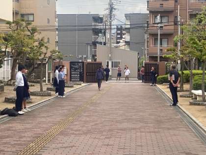 今朝は、全校集会(中止)が予定されていた関係で、8時20分過ぎに校門へ行くとほとんどの生徒の登校が終わっていて、閑散とした状態でした。