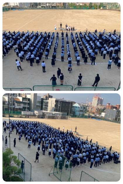 校長先生からは、長寿命化工事も進み、校舎を覆っていたブルーのシートや足場がはずれて、きれいに塗装された西館が現れています。工事も後少しで終了します。