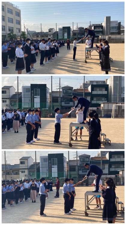 その後、後期学級役員の認証式が行われ、3年1組の学級役員が代表して、認証状を受け取りました。