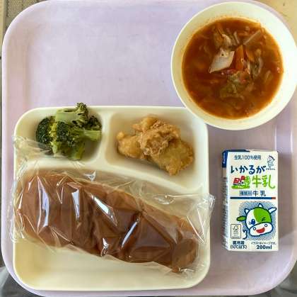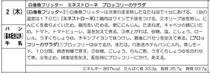 白身魚のフリッター、ミネストローゼ、ブロッコリーのサラダでした。