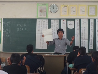 本日は、2年1組と1年1組で道徳の研究授業を実施しました。教育センターの先生も校長先生も参観され、生徒たちには緊張した時間になりました。先生たちも緊張してたと思います。教育センターの先生からは、「去年に比べて、落ち着いた学校になり、良かったですね。」と言っていただきました。最近は、外から来られた方に、褒められることが増えつつあります。うれしいですね。