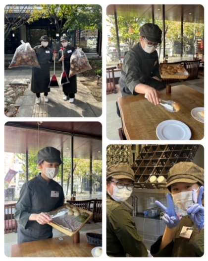 パンの配膳やお店周りの掃除を体験させてもらいました。