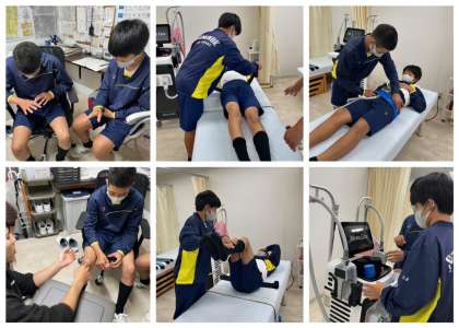 お灸体験や松葉杖体験、インナーマッスルを鍛えたり、脂肪を落としたりすることのできる最新機器のモナリザやEMSパルス機器の体験をさせてもらいました。