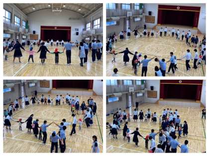 この日は、体育館を使って「なーべ、なーべ 底抜け・・・」みんなでお遊戯を楽しみました。