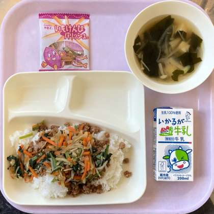 ビビンバは、生徒に人気のメニュー。ご飯の残食率がいつもの半分でした。