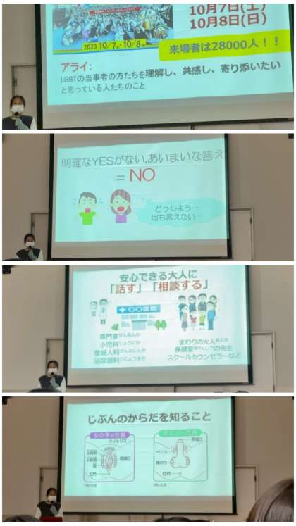 二次性徴や男女の交際、性感染症について助産師さんからお話を聞きました。
