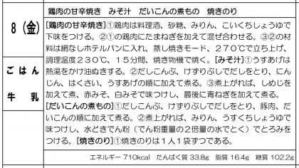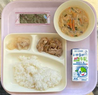 鶏肉の甘辛焼き、みそ汁、大根の煮物、焼き海苔でした。