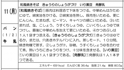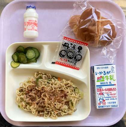和風焼きそば、きゅうりの生姜漬、炒り黒豆、発酵乳でした。