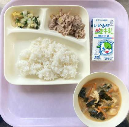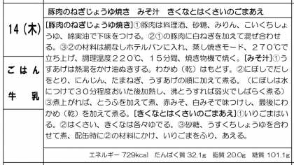 豚肉のネギ醤油焼き、みそ汁、菊菜と白菜の胡麻和えでした。