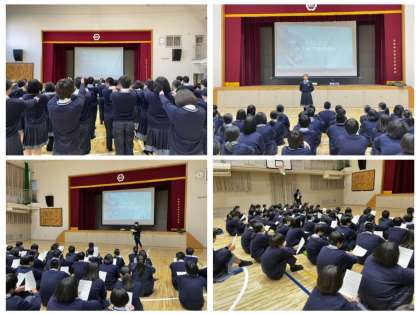 修学旅行は、3年生の5月に予定されていますが、それまでにしっかり準備をしないと間に合いません。そこで、今日修学旅行実行委員会の結団式が行われました。生徒が、修学旅行実行委員会を立ち上げて、修学旅行を行うのは49期生から始まりました。今年の実行委員には、98人が集まってくれました。学年の約半分の人が、思いを持って集まってくれたのは嬉しい反面、仕事が分担され、一人の負担が少なくなることから、責任の重さまで軽く捉えてしまう人がいないかが心配です。ただ、それでも修学旅行に向けて「頑張ろう」と集まってくれた人にやめてくださいといってしまうのは、その気持ちを無駄にしてしまうことなのでしたくありません。何度もこんなに修学旅行実行委員が要るかな?と、先生達は何度も話し合いましたが、それでも全員にお願いすることに決めました。その思いを受け止めて、しっかり一人一人が取り組んでもらいたいと思います。