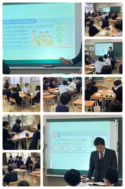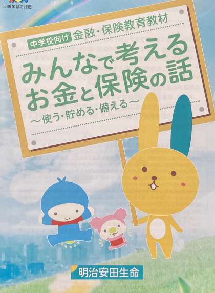 3年生の家庭科の授業で「みんなで考えるお金と保険の話」と題して、明治安田生命の職員の方の出前授業を受けました。