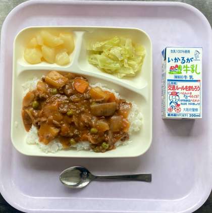 今日は、ハヤシライスに牛乳。