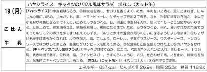 キャベツのバジル風味サラダ、洋梨(カット缶)でした。