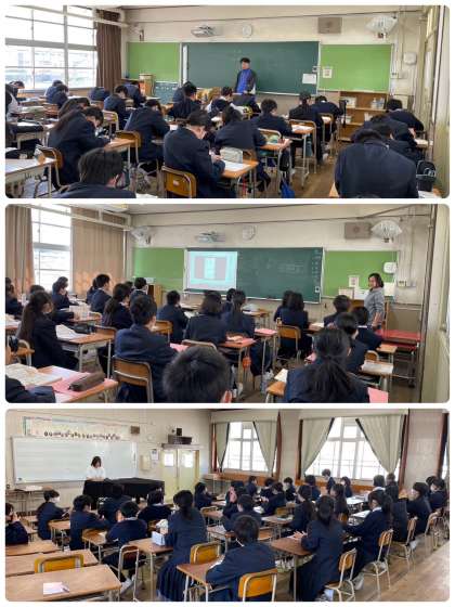 4月10日(水)、1年生の「国語」「家庭科」「音楽」の授業の様子です。