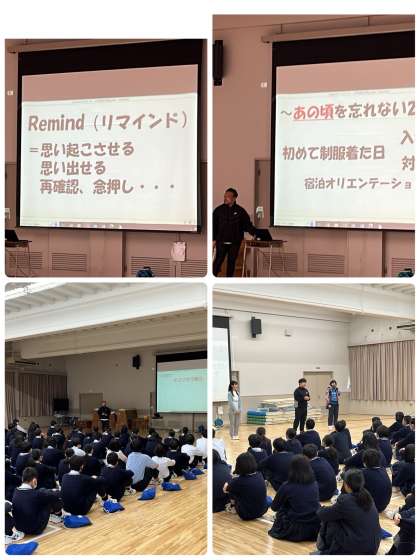 学年主任の太田先生から新年度の始まりとしてお話がありました。2年生の学年目標が発表されて説明がありました。