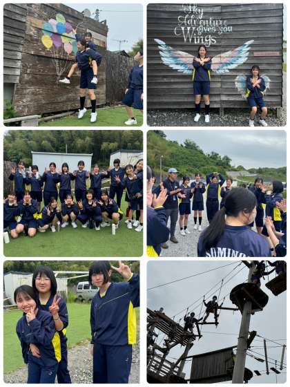 高所、しかも足元が不安定ななかの移動で、叫び声が聞こえます。そのうち、「勇気100%」の合唱が聞こえてきました。お互い励まし合いながら、「勇気の一歩」を踏み出しています。