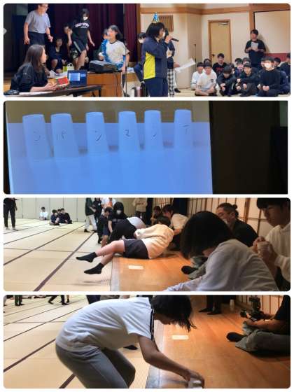 ノリノリの司会が檄を飛ばしながらルールを説明してくれました。紙コップに書かれたバラバラになった言葉を意味の通じるように並び替えれれば勝ちですが、一人5秒の持ち時間でどれだけ次の人につなげるかが勝利の鍵となります!頭脳と体力両方問われます。