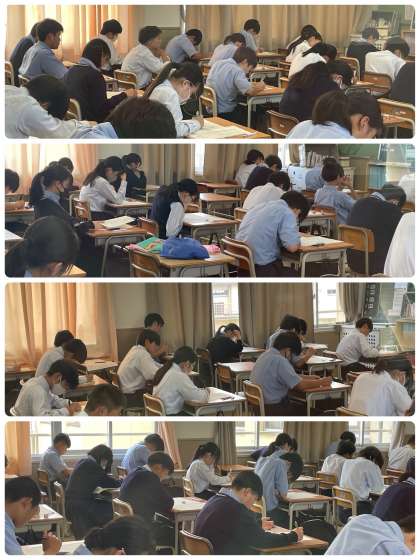 6月4日(火)、三年生は第一回実力テストが行われています。日々の頑張っている成果をしっかりと出してください。