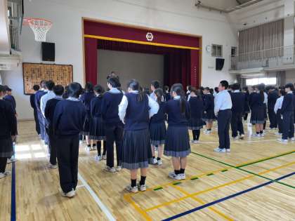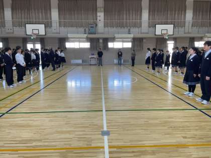 4月14日(月)1限目、体育館にて集団行動の振り返りと各クラスでの生徒の手引きについての話がありました。挨拶の声の反応の速さは責任の重さの表れだということ、挨拶には様々ないい効果があることなど今までやってきたことを学年の始まりということでしっかり確認を行いました。