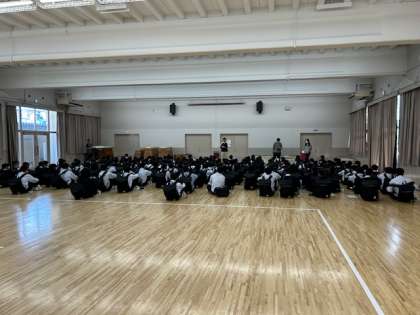 本日6限目、来週の宿泊オリエンテーションに向け、事前学習を行いました。たくさんの人数で公共交通機関を使って移動します。他のお客様の迷惑にならないよう、また、スムーズに移動ができるように体系の練習をしています。このあとは忘れ物がないか、点検も行います。みんなで協力し、いい宿泊オリエンテーションにしましょう!