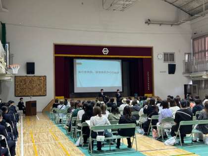 本日16時より、3年生の保護者対象の修学旅行説明会を行いました。今回のスローガンは「Peace&Memory 〜187人の想いを一つに〜」です。説明会も生徒たちが主体となって進めてくれました。実行委員のみなさんお疲れ様でした。ありがとう!