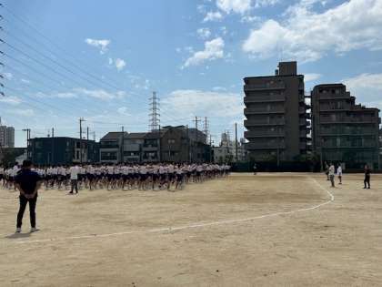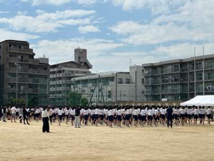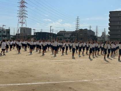 6月13日の本番に向け、3学年そろっての全体練習の様子です。しっかり準備して、思い出に残る良い体育大会にしましょう!