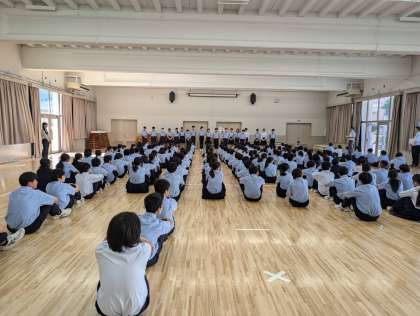 5月28日(水)、体育大会実行委員のメンバーからのお話がありました。体育大会を盛り上げてくれます。