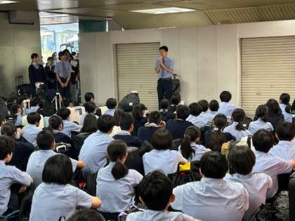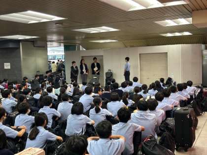 天候にも恵まれ、いよいよ修学旅行がスタートです。出発式を終え、ホームに向かいます。