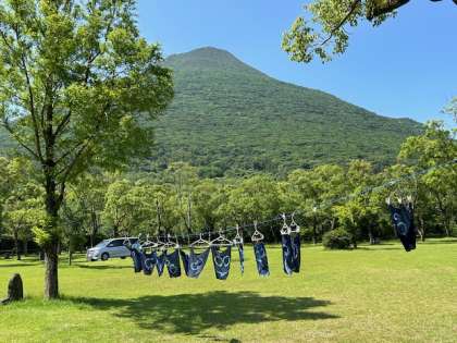選択別体験、草木染めの様子です。綺麗なインディゴブルーのハンカチが染めあがりました。