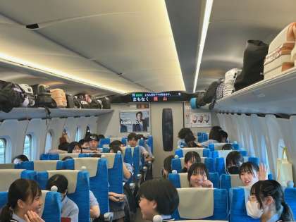 太宰府での班活動を終え、博多駅から新幹線で移動中です。現在、岡山駅、新大阪の到着時刻は予定通り18時04分の予定です。