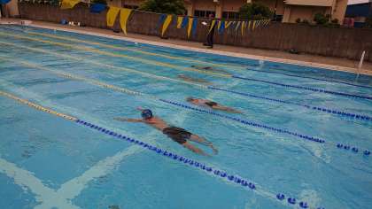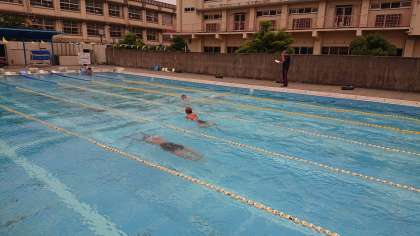 放課後、水泳部の練習です。3年生が修学旅行の代休のため、本日は5人で練習を頑張っています。課題を意識しながら練習に取り組んでいます。