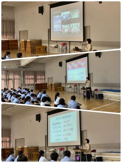 1年生は1限目に本校の朝文研に来てくださっている民族講師のチェ エヨン ソンセンニムから講話がありました。日本と朝鮮の交流についての話や、日本が朝鮮を植民地にした時代のこと、朝文研が本校にできるに至る歴史等を学びました。